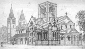 On the north side of the great church were the cloisters and living accommodation, all built in fine stone. The river Ryton served to bring water first to the Priory Mill on the Canch, then to the kitchens, (where the church hall now stands). It then flushed away the kitchen and domestic waste before being dammed to provide fish ponds on what is now Bracebridge. |