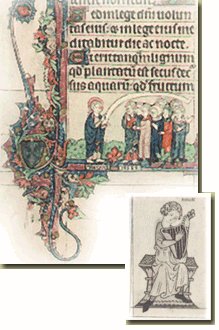 The Psalter, or book of Psalms is richly decorated with wonderfully colourful capitals and borders with scenes from the life of King David. |